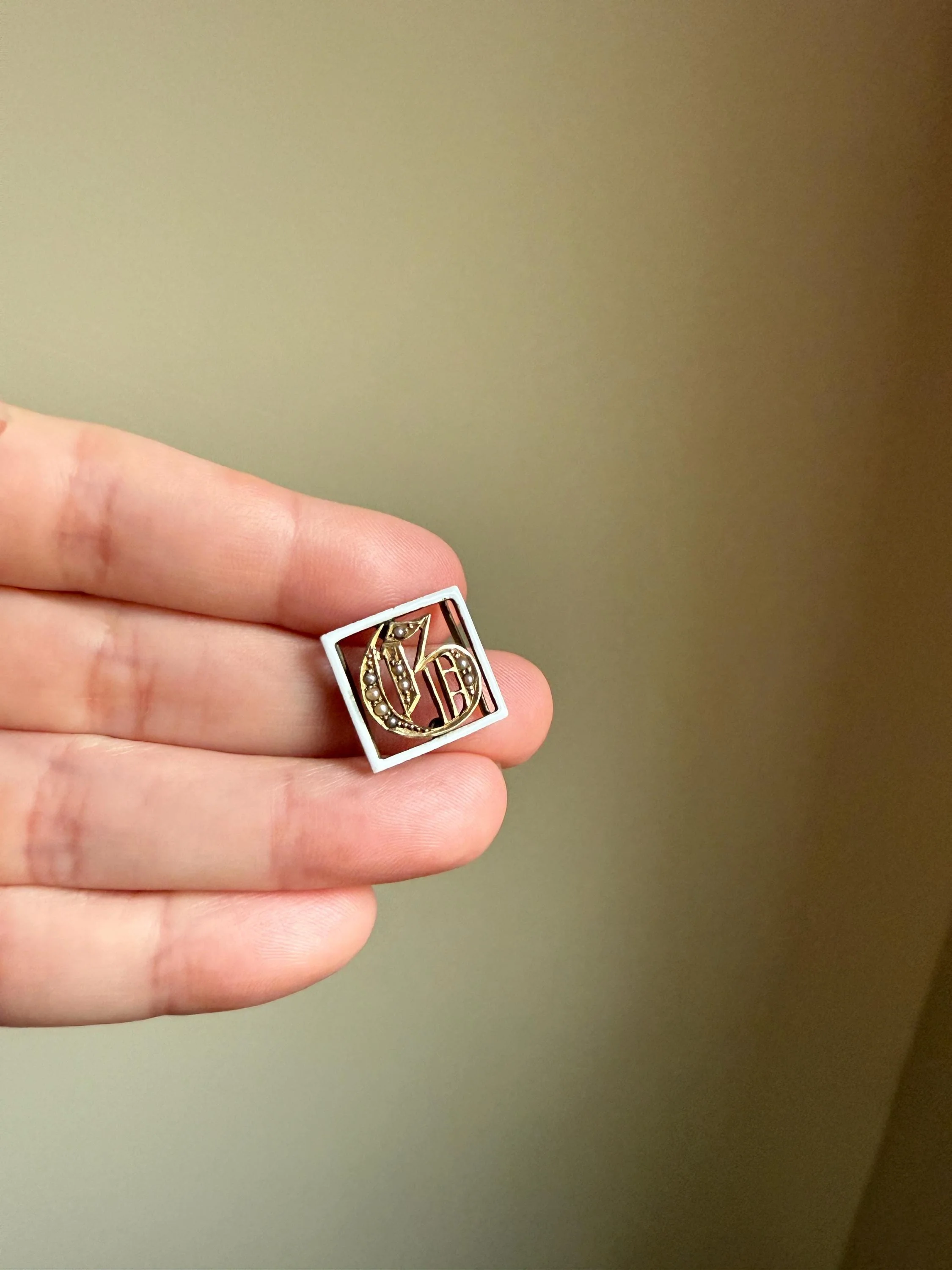 Antique INITIAL G C Slide Letter PEARL Pendant 14k Gold Enamel Bracelet Necklace Charm Gift Symbol Victorian - Art Deco Geometric Monogram