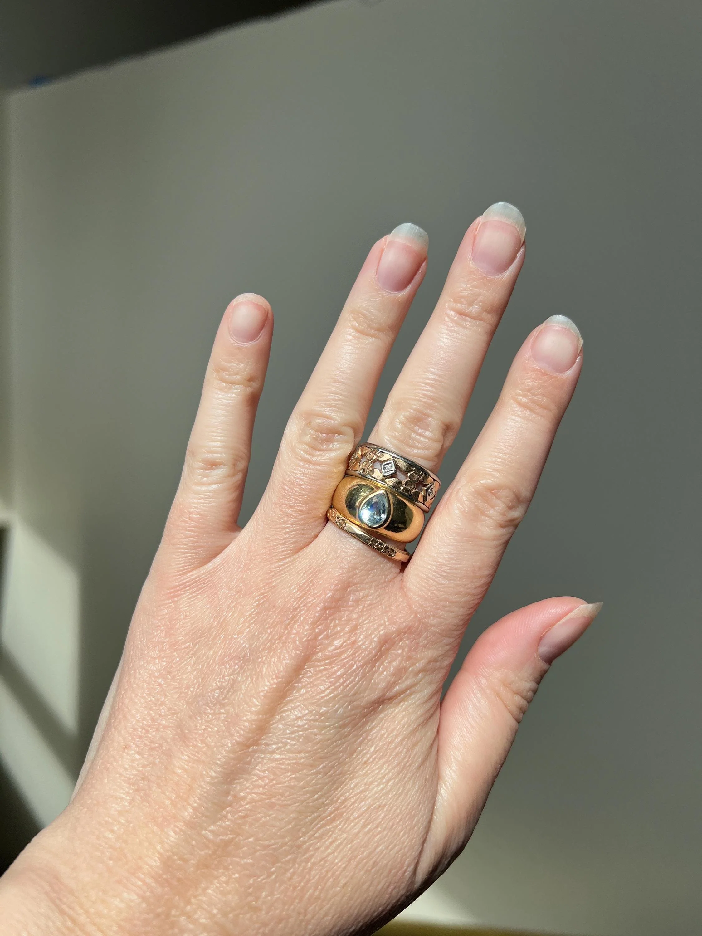 Love love love mixing metals in my ring stack and this is the perfect chunky stacker for such a thing.