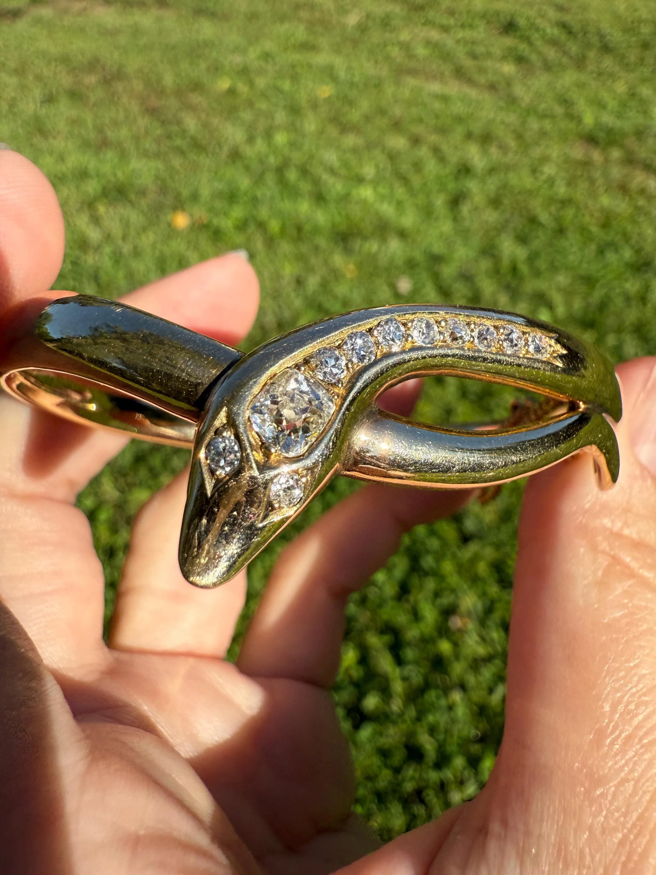 SNAKE Antique 1.3 Carat Old Mine Cut DIAMOND 32g 14k GOLD Chunky Heavy Bangle Bracelet Figural